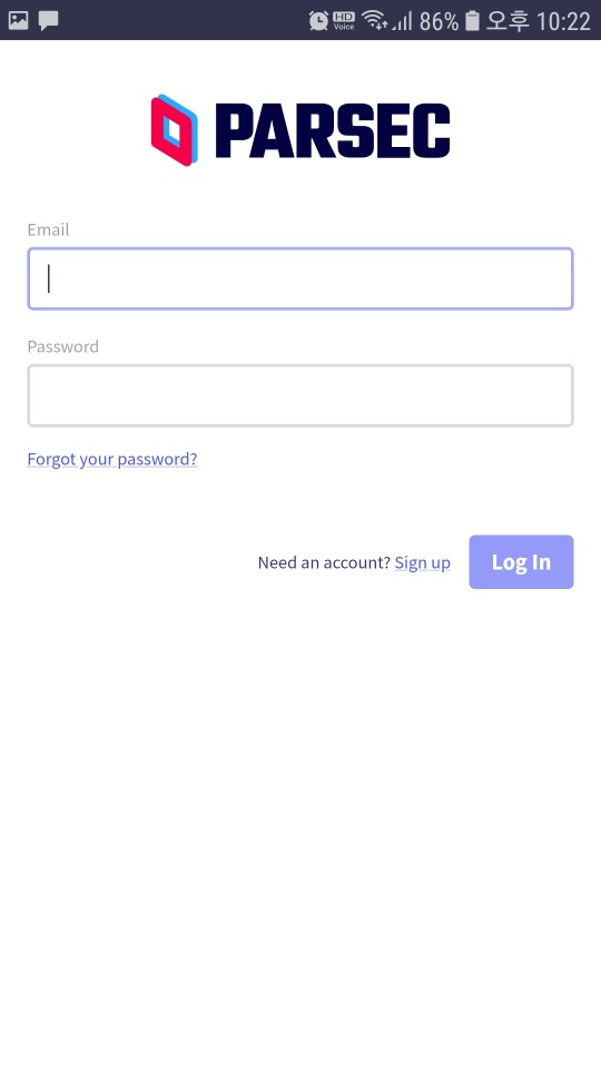 앱이 실행되면 로그인 창이 뜨는데요. 가입한 메일로 로그인하면 됩니다.