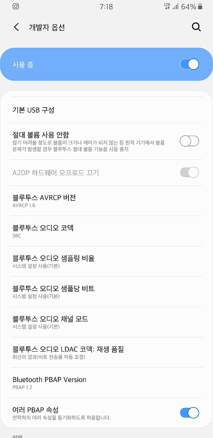 "블루투스 오디오 LDAC 코덱 선택 실행 : 재생품질" 을 클릭하여